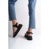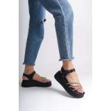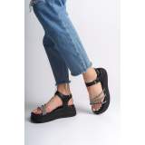 Lisinya948  Kalın Tokalı Taşlı Şeritli Ortopedik Taban Kadın Sandalet ST Siyah