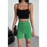 Tarz ve Rahatlığı Bir Arada Sunan Yüksek Bel Esnek Likralı Krep Şort Yeşil\n